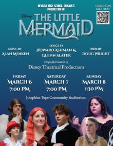 Nevada HS Spring Musical – Disney “The Little Mermaid” + Add to Google Calendar + iCal / Outlook export 00 days 00 hours 00 minutes 00 seconds Date Mar 06 2026 Time 7:00 pm - 9:30 pm Share this event